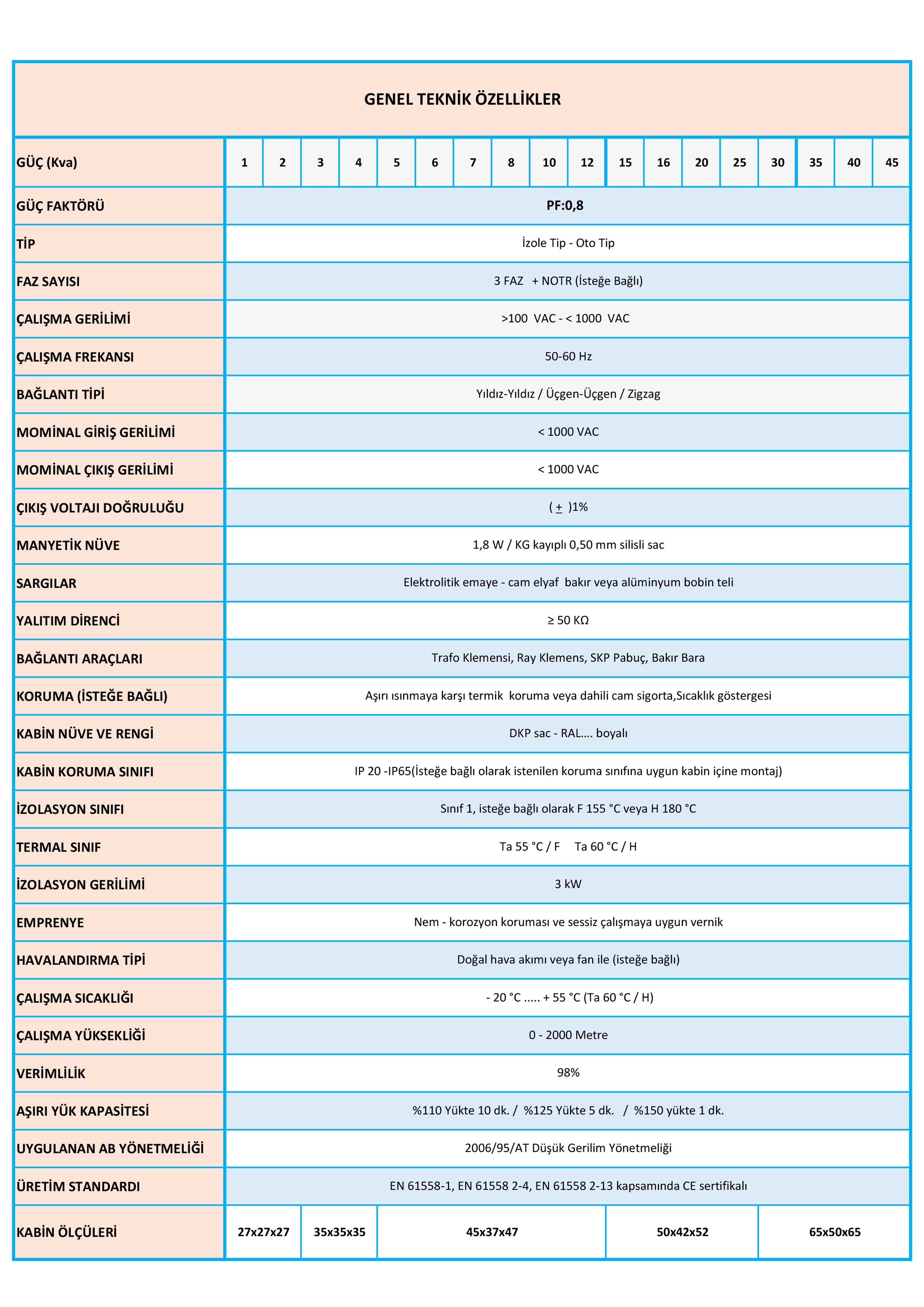 • CE işaretli ve EN 61558’in istenilen her türlü alt standartları ile uyumlu.