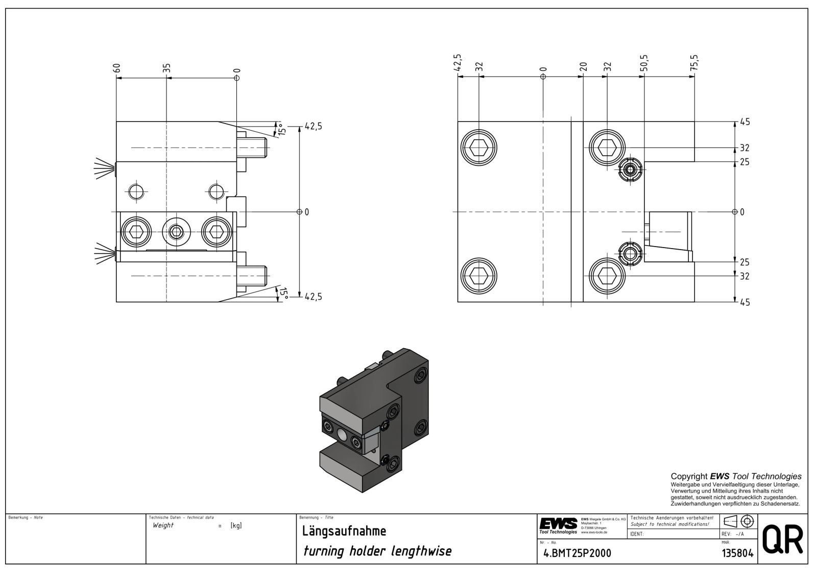Ürün Kodu: PAR000000009722EWS 4BMT25P2000 BMT-55 25X25 Dış Çap Kater Tutucu