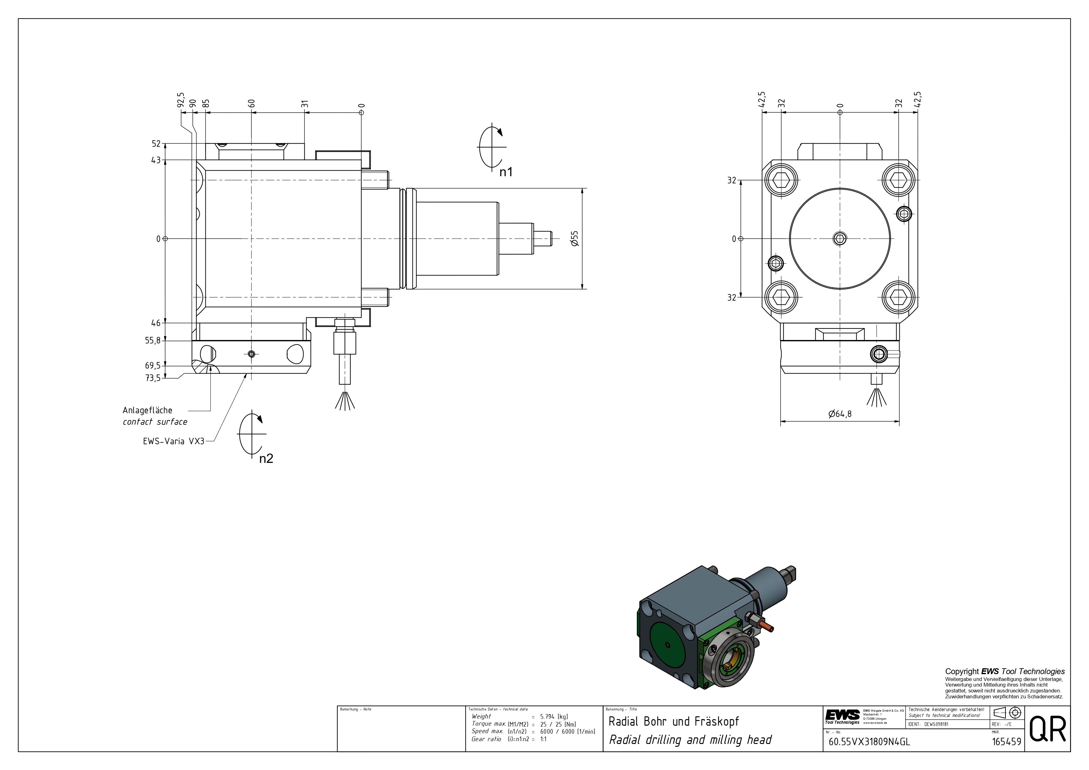 EWS 60.55VX31809N4G4 H60 BMT-55 VARİA VX3 RADİAL 90° TAHRİKLİ TAKIM