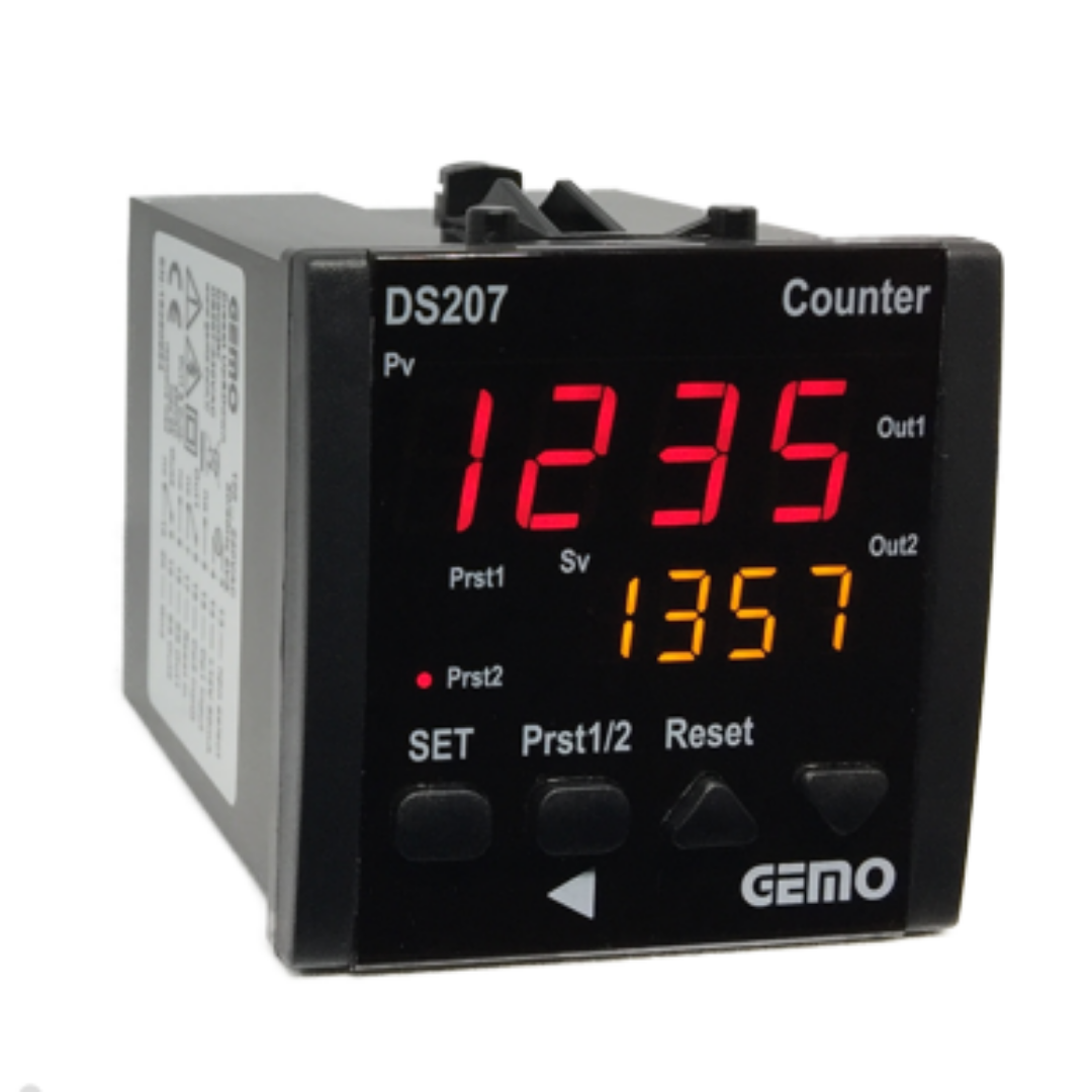 Ürün Kodu: PAR000000009812Gemo DS217A-230VAC 72X72 230Vac 6 Haneli Çift Setli Sayıcı