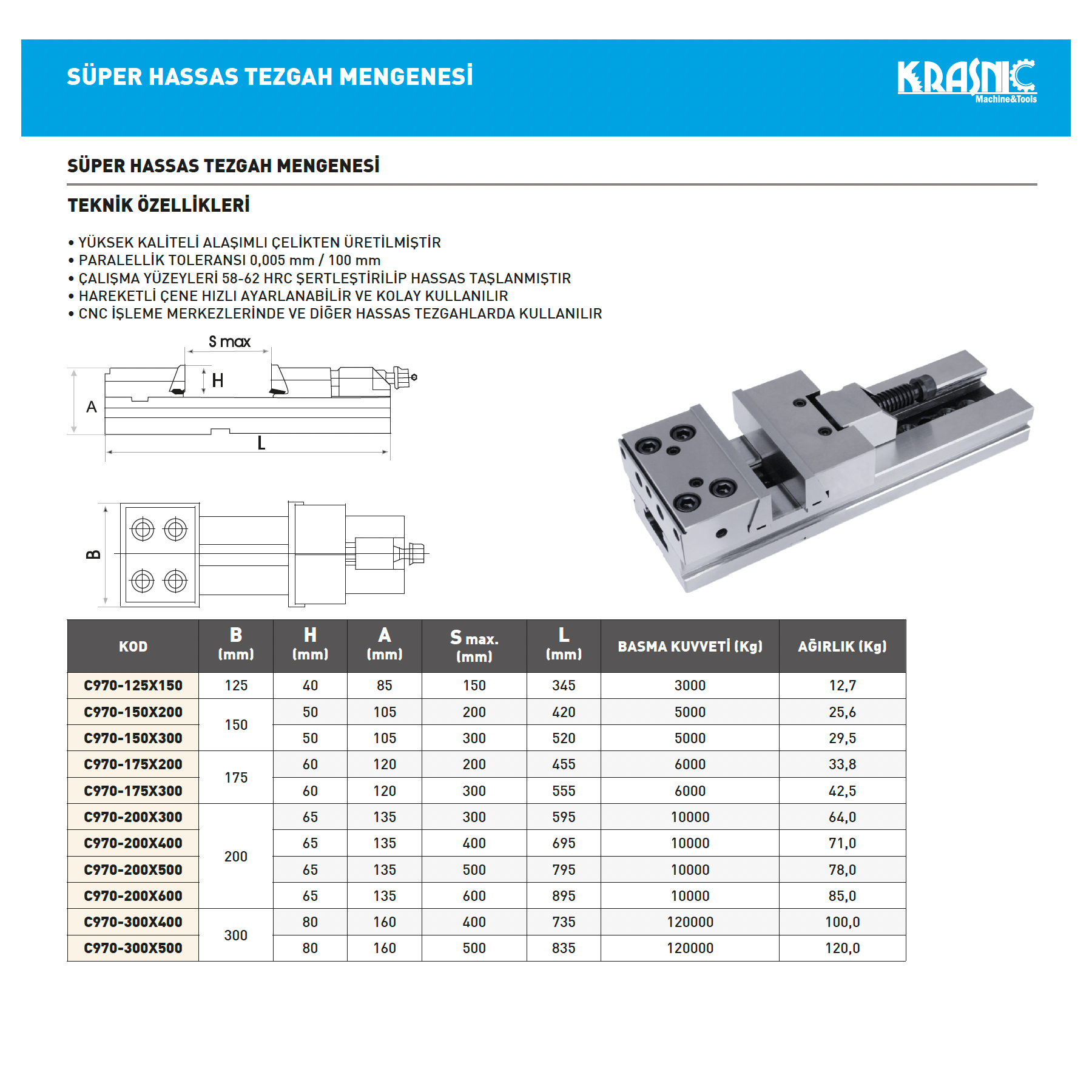 ÇALIŞMA YÜZEYLERİ 58-62 HRC SERTLEŞTİRİLİP HASSAS TAŞLANMIŞTIR.